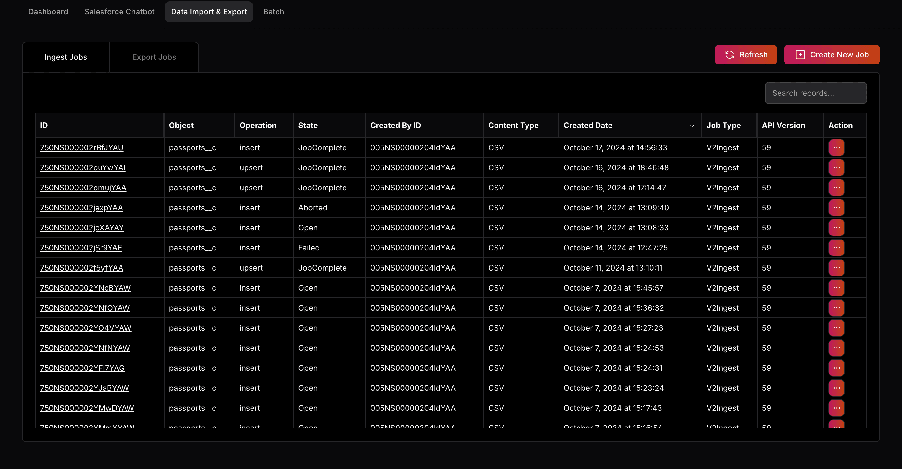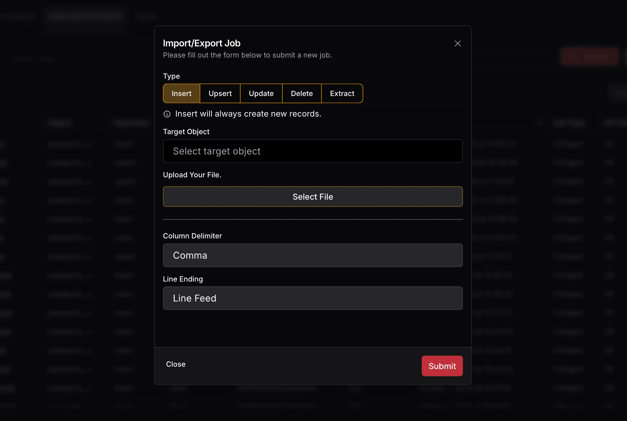 DonkeyApp’s Data Import & Export feature simplifies large-scale data operations in Salesforce. Perform bulk operations like Insert, Upsert, Update, Delete, and Extract with ease. Detailed statistics provide visibility into every import and export job, including successes and failures. Monitor job statuses in real-time with a user-friendly dashboard, ensuring full control over your data operations. Whether you're managing massive datasets or handling routine imports, DonkeyApp ensures a smooth and efficient process.
