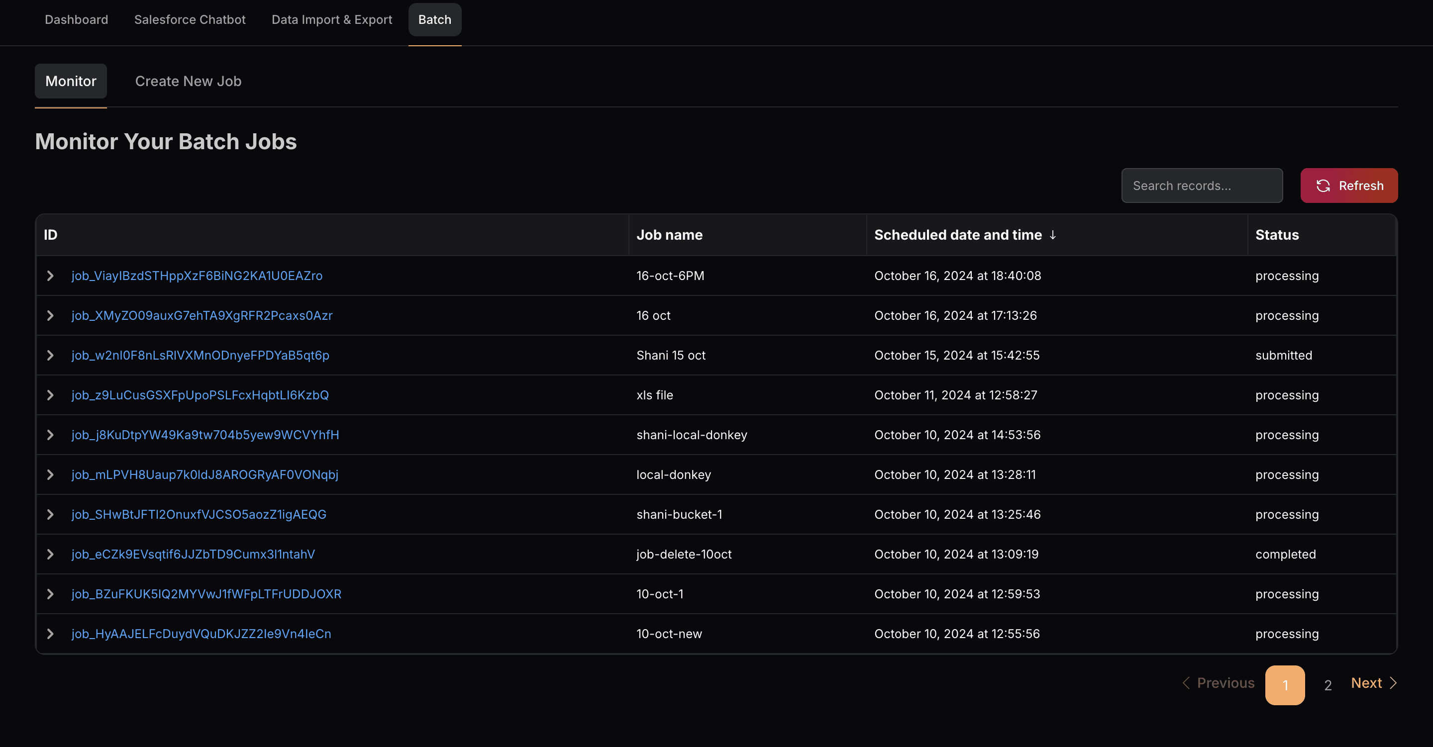 DonkeyApp’s Monitoring feature provides a comprehensive dashboard for tracking all import, export, and batch processing jobs. Users can access a complete history of each job, including success and failure rates, errors, and detailed statistics. This feature makes it easy to diagnose issues without navigating through multiple tabs, giving Salesforce users a single, streamlined view to ensure smooth operations and quick resolutions.